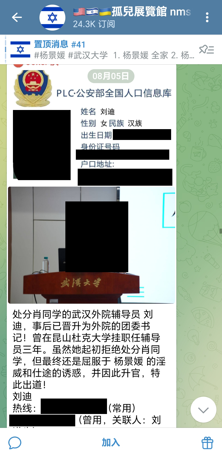 • 当肖方指控杨景媛网暴刘迪、公布辅导员的个人信息时,男权分子才是开盒刘迪信息并公布的人,而杨景媛公布的不过是刘迪在武大官网上对外的联系方式;