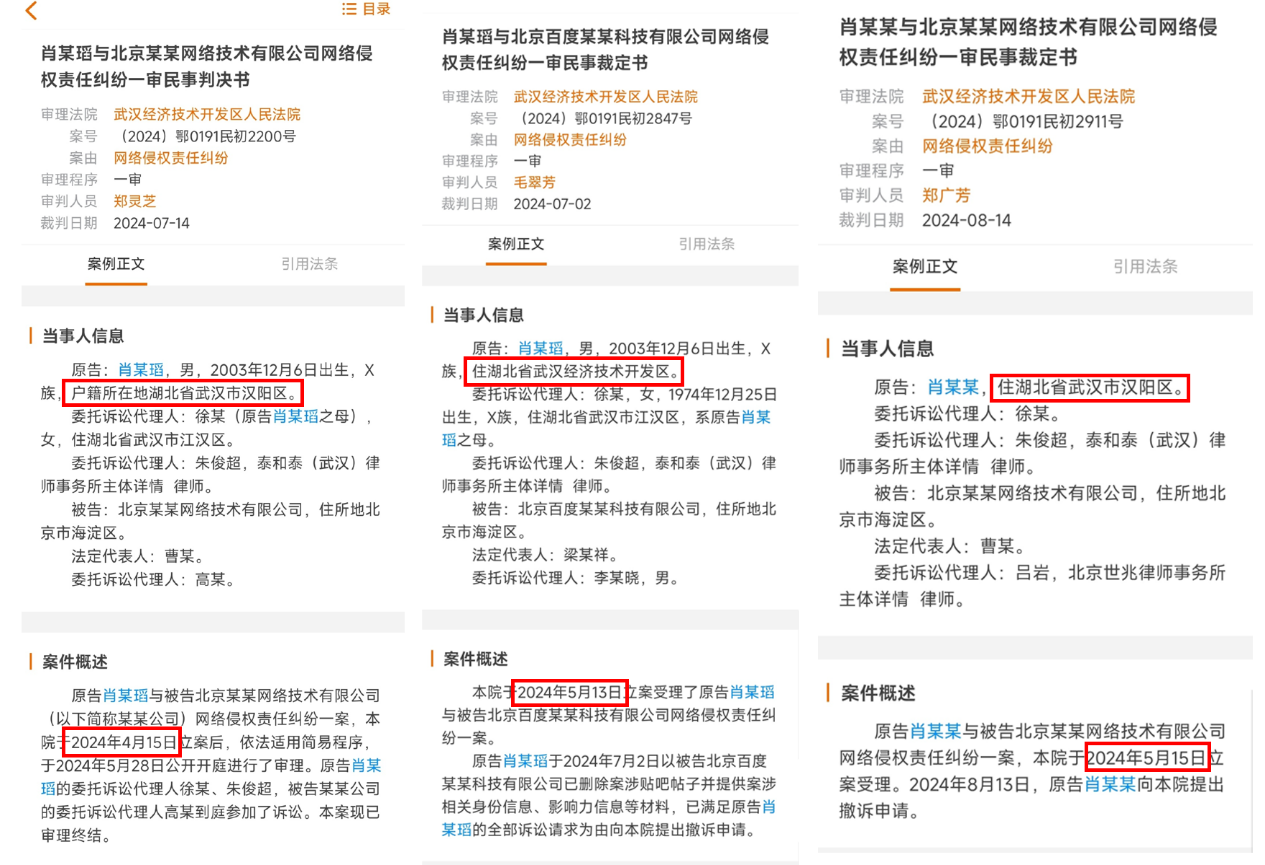 2025年7月25日:武汉经济技术开发区人民法院判决原告杨景媛败诉。杨景媛发布一审判决书,当日即被开盒,个人信息满天飞。